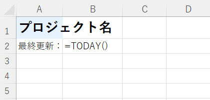 2行目には「最終更新:」というラベルの横にTODAY関数を使用して自動更新される日付を表示させます。