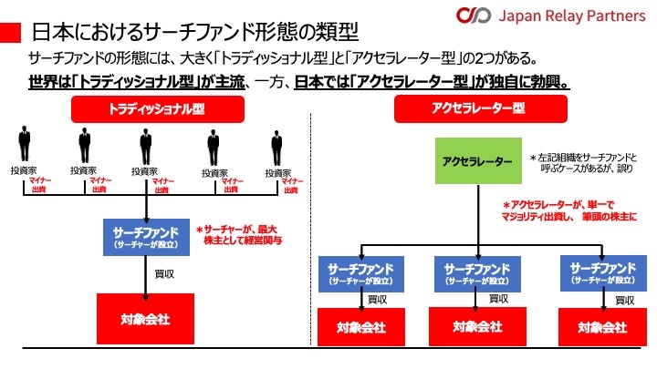 日本のサーチファンドは「トラディショナル型」と「アクセラレーター型」の2種類