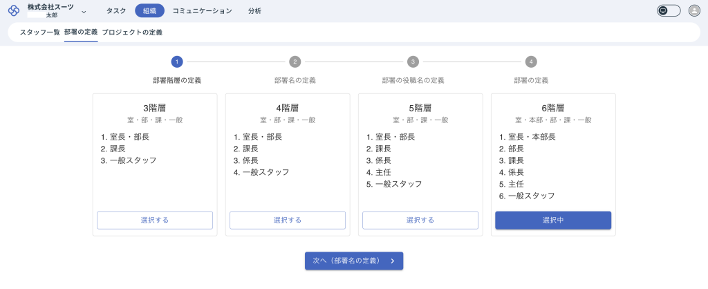 部署階層を3階層から6階層まで選択することができます。