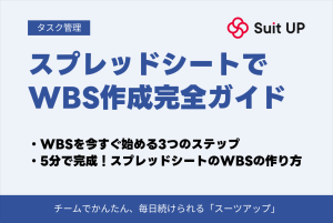 スーツアップではタスク設定を、スタッフが実行する最小単位の作業や課題である「タスク名」、この「タスク名」を管理しやすくグループ分けするための「中項目」「大項目」と用意しています。この3つの区分けでタスク設定をするわけですが、並列関係を意識してタスクを網羅して記載するのもいいでしょうし、時系列を意識して記載するのもいいと思います。「タスク名」については、特定のスタッフだけではなく誰でも理解しやすく、実行に着手しやすい具体性と抽象度・粒度で設定しなければなりません。