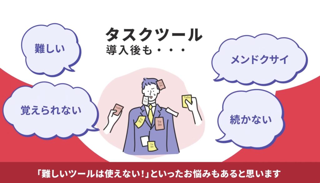 そうなりますよね。私も以前はそうでした。タスク管理ツールを導入しても面倒で使ってくれないし、結局意味なくなる。